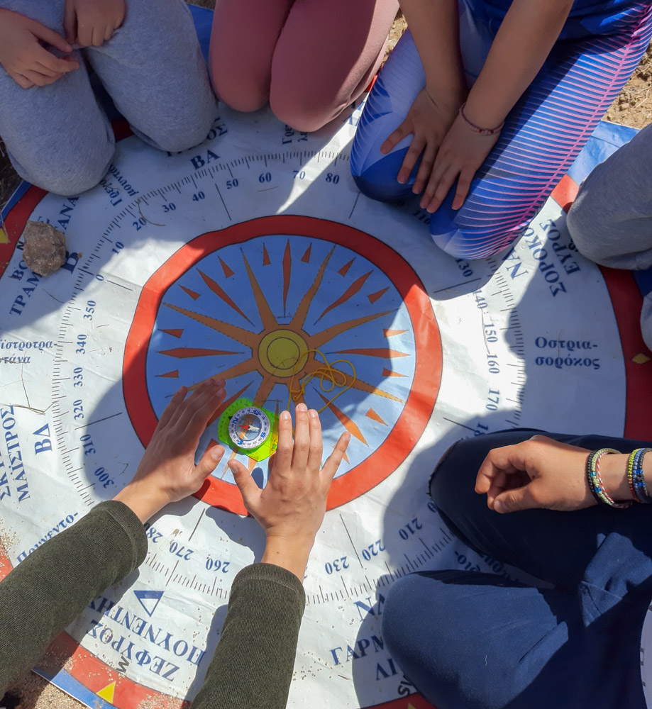 • «Διαβάζουμε» την πυξίδα και προσανατολιζόμαστε στο χώρο. Εξασκούμαστε στις βασικές πρώτες βοήθειες, μαθαίνουμε για το σωστό ρουχισμό και την ιδανική διατροφή στην ύπαιθρο. Εξερευνούμε το φυσικό χώρο και αποτυπώνουμε τη χλωρίδα του. Εξοικειωνόμαστε με τον παγκόσμιο κώδικα επικοινωνίας κατασκευάζοντας ανιχνευτικά σύμβολα. Μαθαίνουμε πώς να μαγειρεύουμε χωρίς κουζίνα!