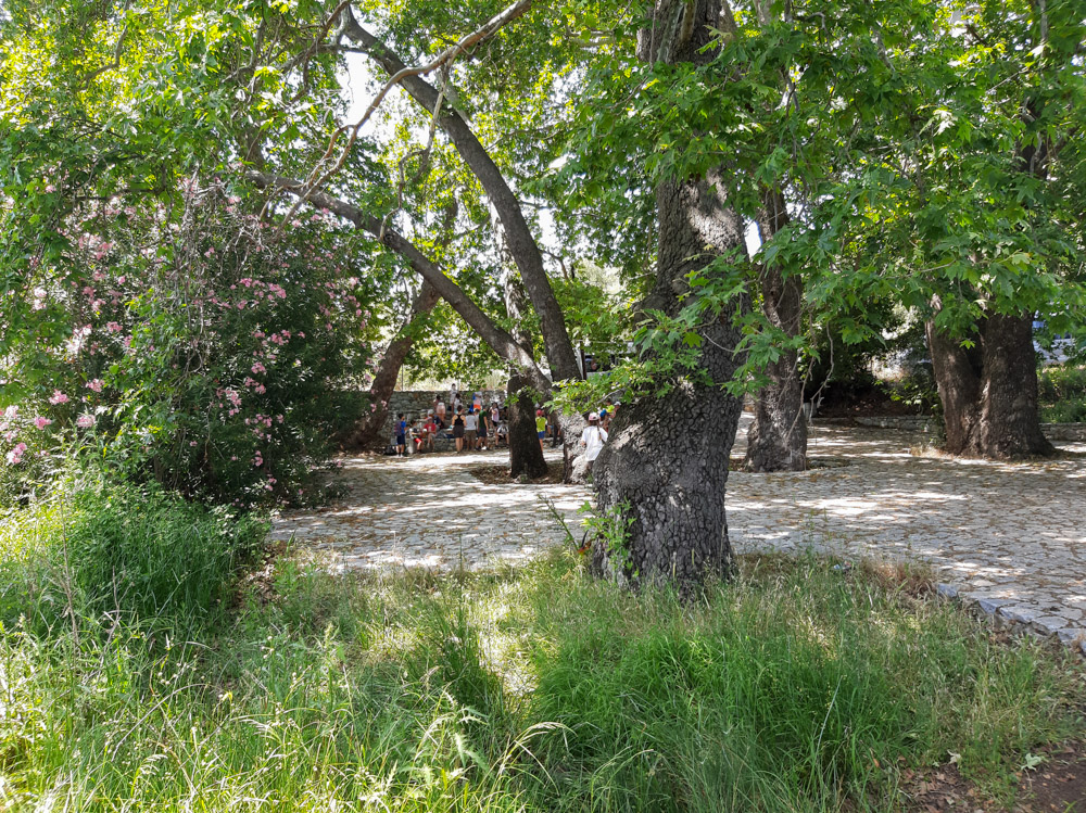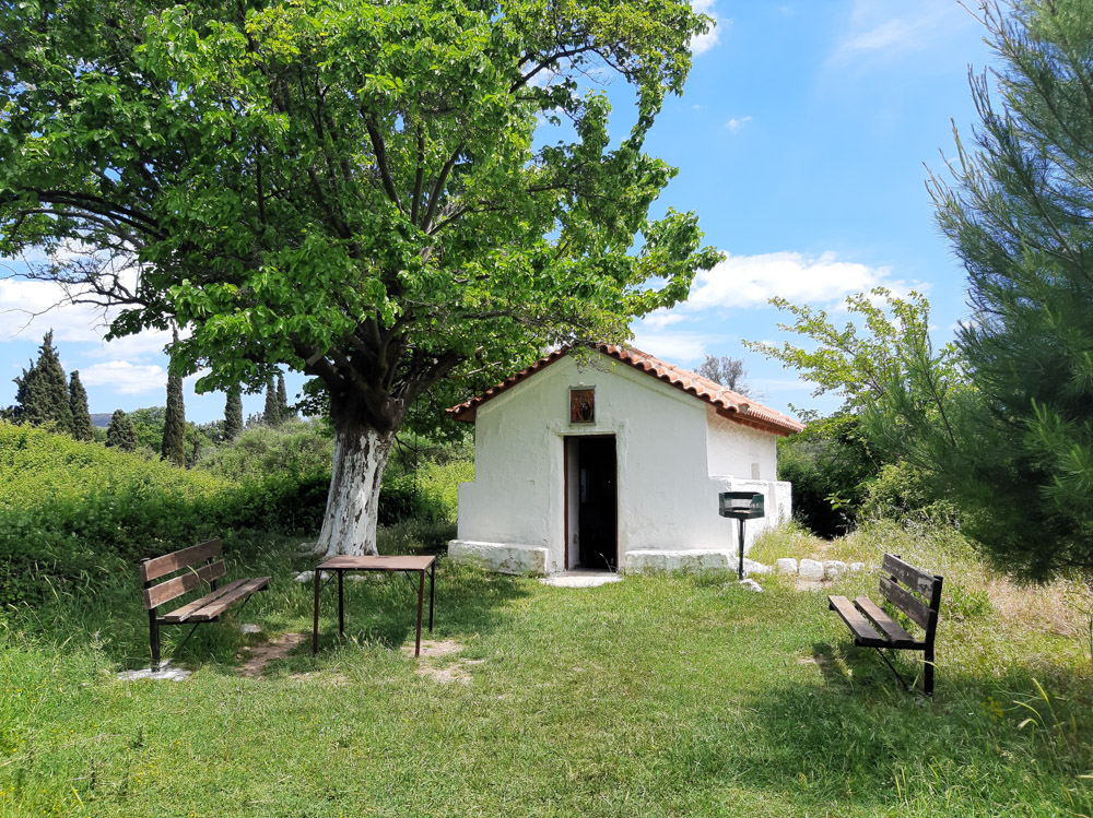 - Η διαδρομή μας καταλήγει στο φράγκικο εκκλησάκι μέσα στο δάσος που είναι χτισμένο με αρχαία μαρμάρινα στοιχεία. Κάνουμε πικνίκ στο «θεατράκι» γύρω από το Ιερό.